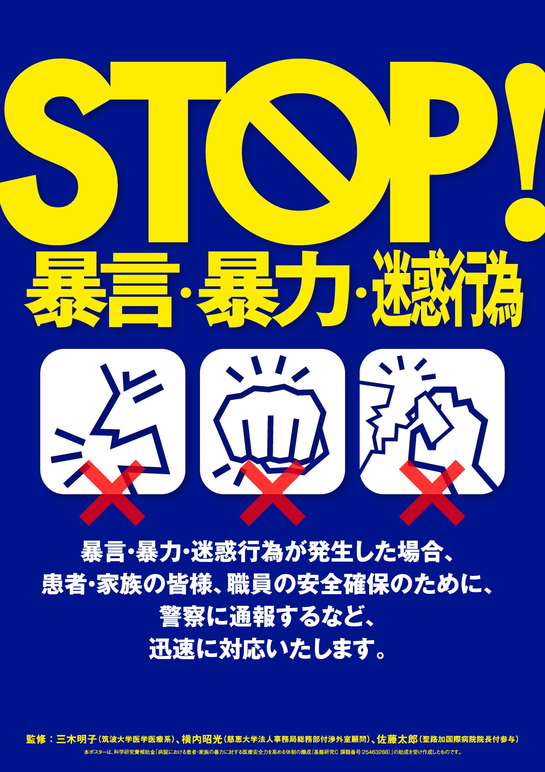 しかし、ごくわずかではありますが、患者様及びご家族が、当院の職員に対して常識の範囲を超えた要求や悪質なクレーム、人格を否定する言動・暴力等の迷惑行為を行う事態が発生し、職場環境や診療環境の悪化を招いています。
